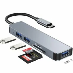 The 5-in-1 Type-C dispenser has PD quick charging port, USB 3.0 port, USB 2.0 port and is suitable for USB C notebook, mobile phone, pad and other devices.