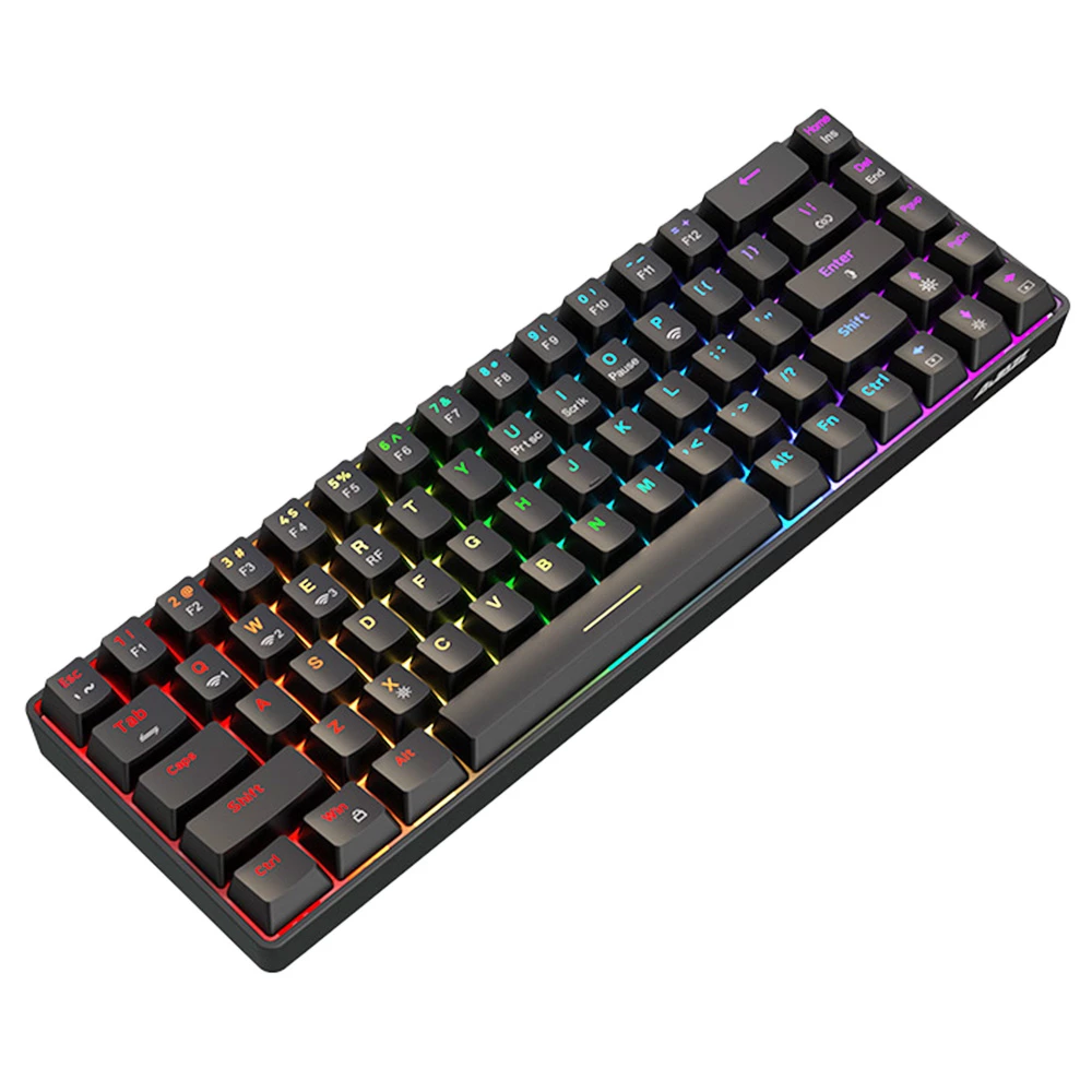 Ajazz K685T RGB Hot-swappable 68 Keys Mechanical Keyboard, Wired + Bluetooth + 2.4GHz Wireless Connection, Support Windows 2000 / Windows XP / Windows 7/8/10, Green Switch – Black