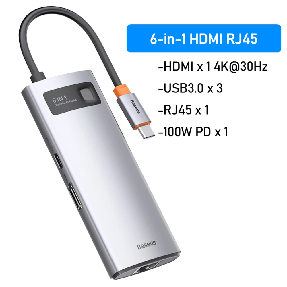 6-in-1 HDMI-compatible RJ45: 4K HD + 3*USB3.0 + RJ45 + PD