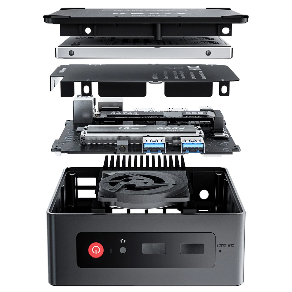 The built-in fantastic cooling fan, heat sink, and hard drive cooler help cool down the hardware and reduce hardware loss, delivering faster response speed. MINI S desktop pc features a variety of interfaces design (4*USB3.0, 2*HDMI, 1*RJ45 1000M LAN, 1*Audio Jack, 1*DC Jack), easily meet office business needs, home audio and video needs.