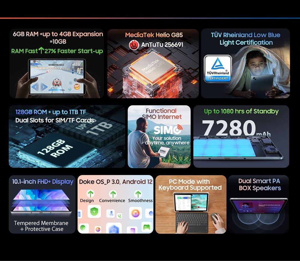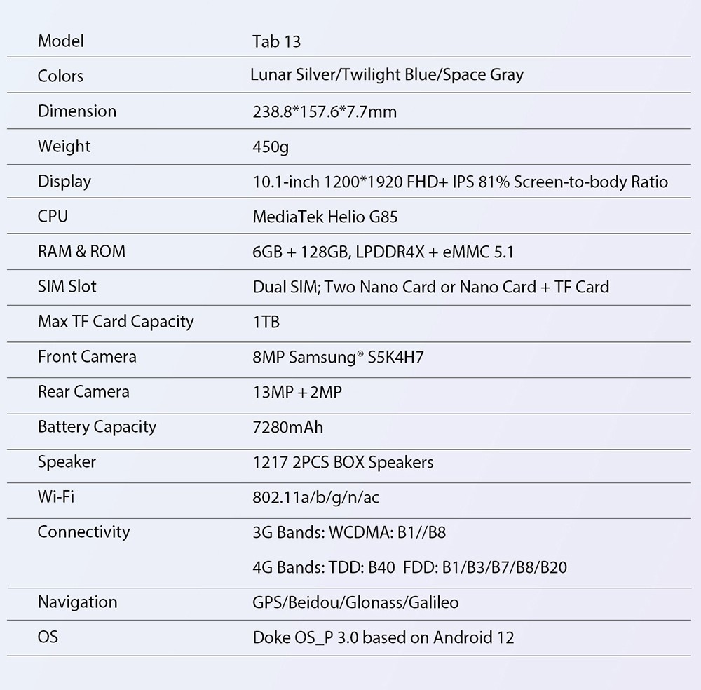 128GB ROM + up to 1TB TF, Dual Slots for SIM/TF Cards