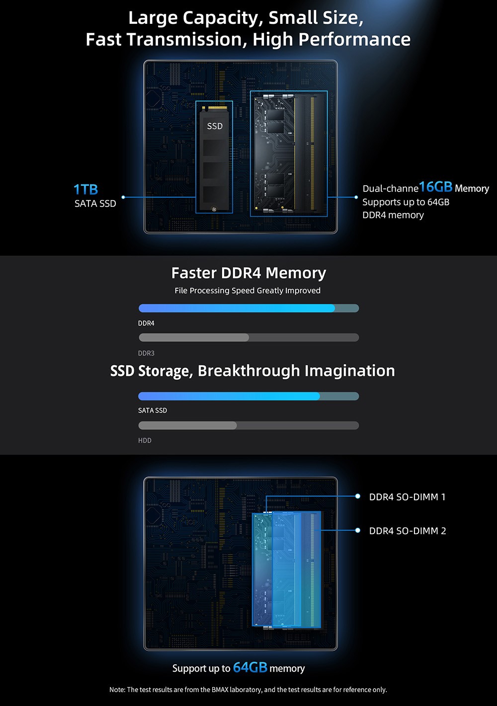 The mini PC has a cooling system smart fan + two copper heat pipes, which enables BMAX B7 Pro to have better heat dissipation and quiet performance.Â