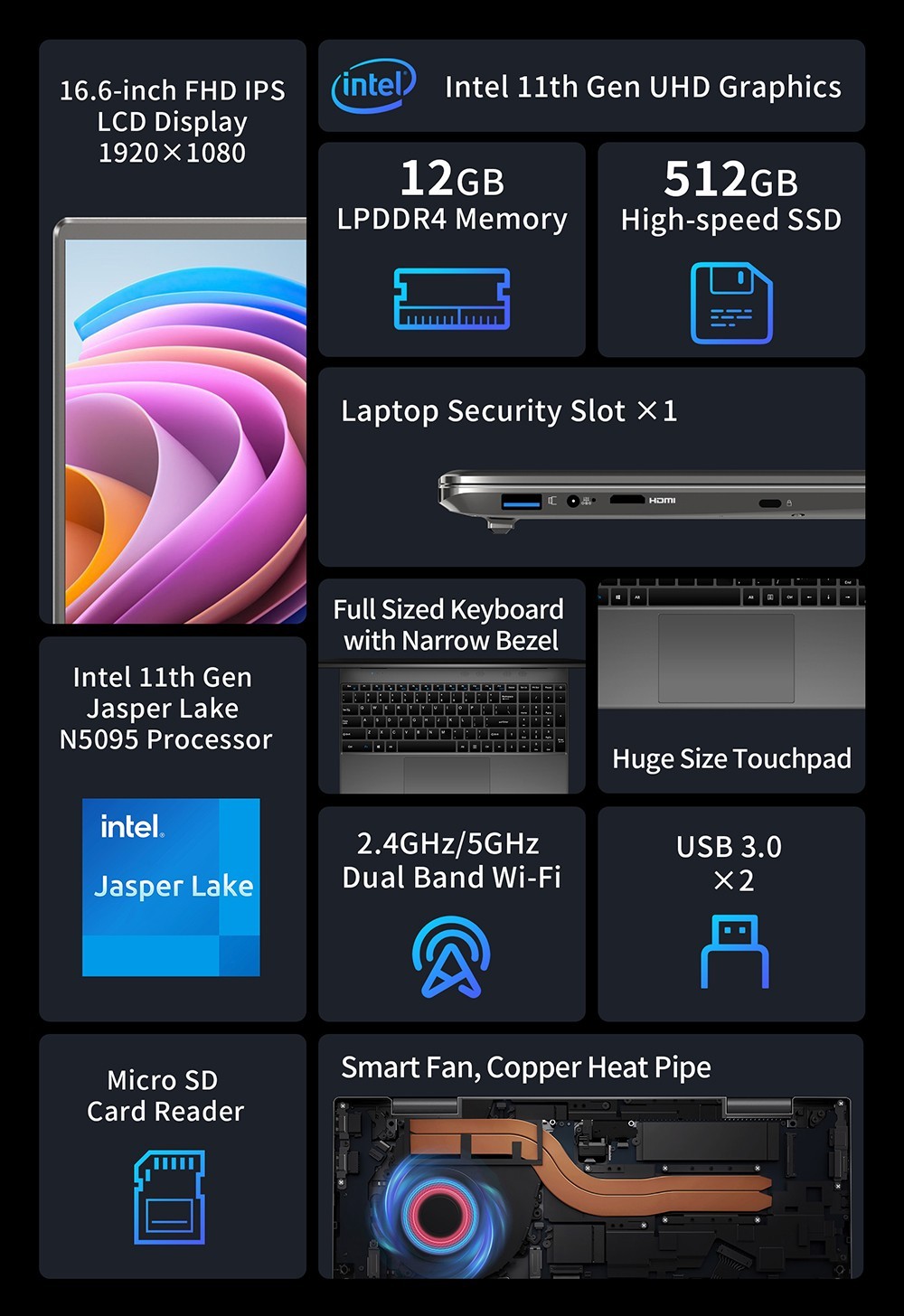 BMAX X15 Plus 15.6” 1080P Laptop Intel Jasper Lake N5095 4 Cores 4 Threads, 12GB DDR4 512GB SSD Windows 11 5G WiFi Grey – US