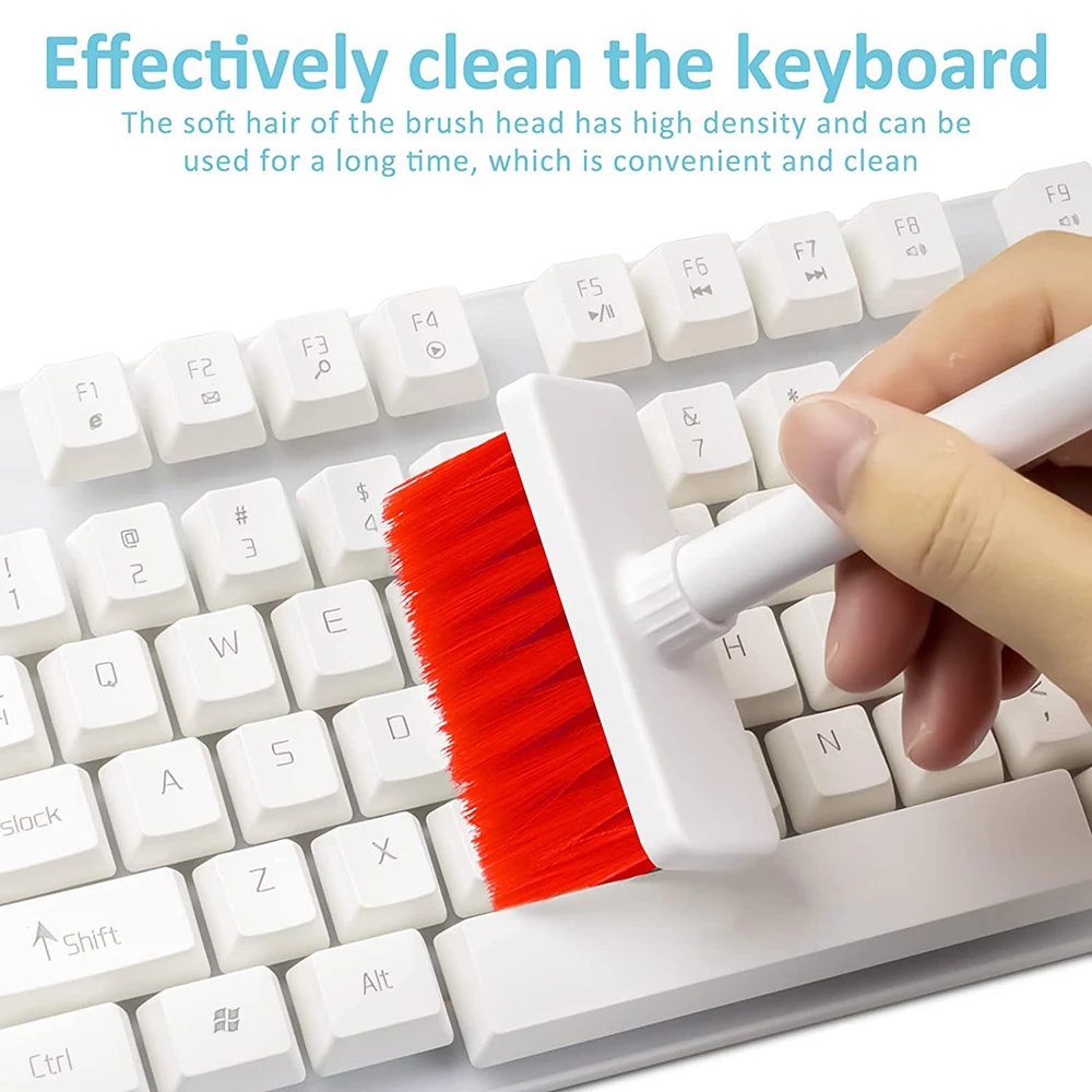 The 5-in-1 computer cleaning set is equipped with nylon bristles, flocking sponges, high-density brushes, metal pen tips and keycap pullers. The double head concealed design meets a variety of cleaning needs.