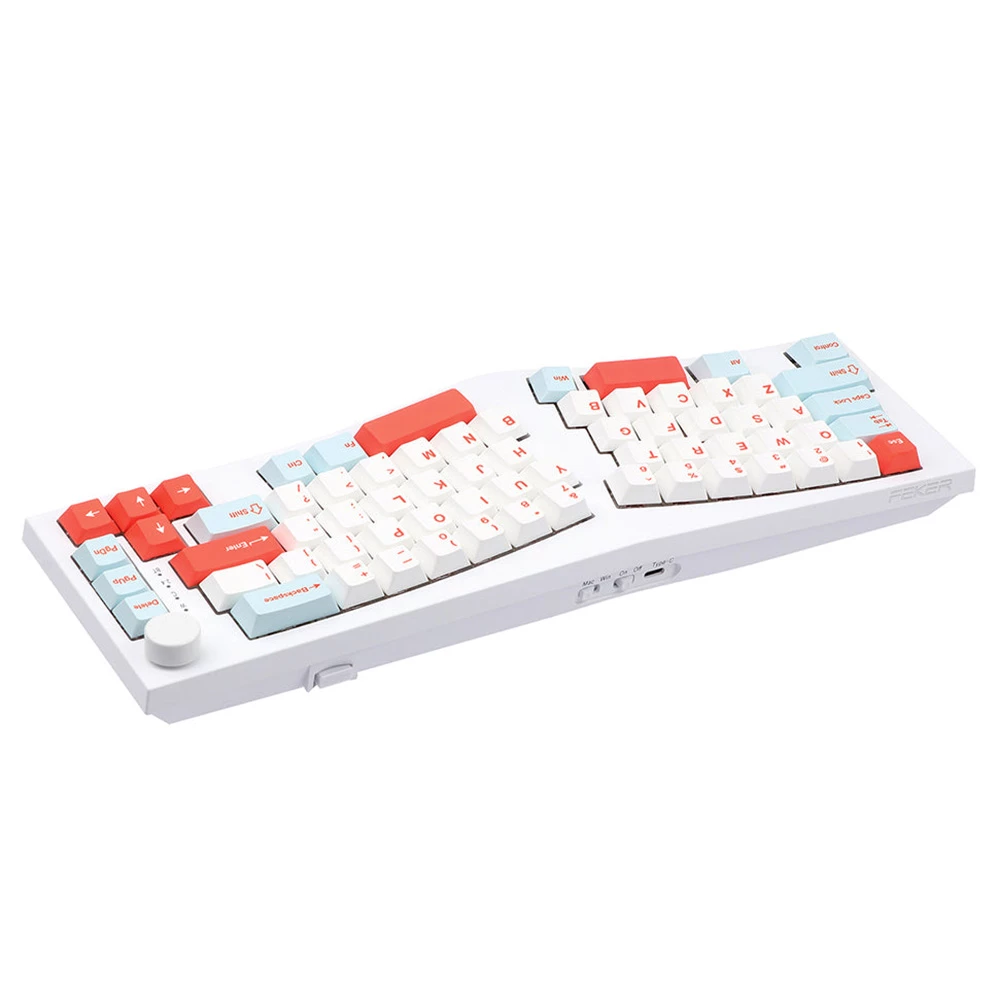 This 68-key mechanical gaming keyboard features hot-swappable switch sockets,a split layout, gasket mount, and sound absorption foams. Hot-swappable sockets for easy customization including Cheery MX,Kailh, Gateron switches, and other 3-pin/5-pin switches. Pre-lubed switches make it easier for customization,providing smoother keystrokes.