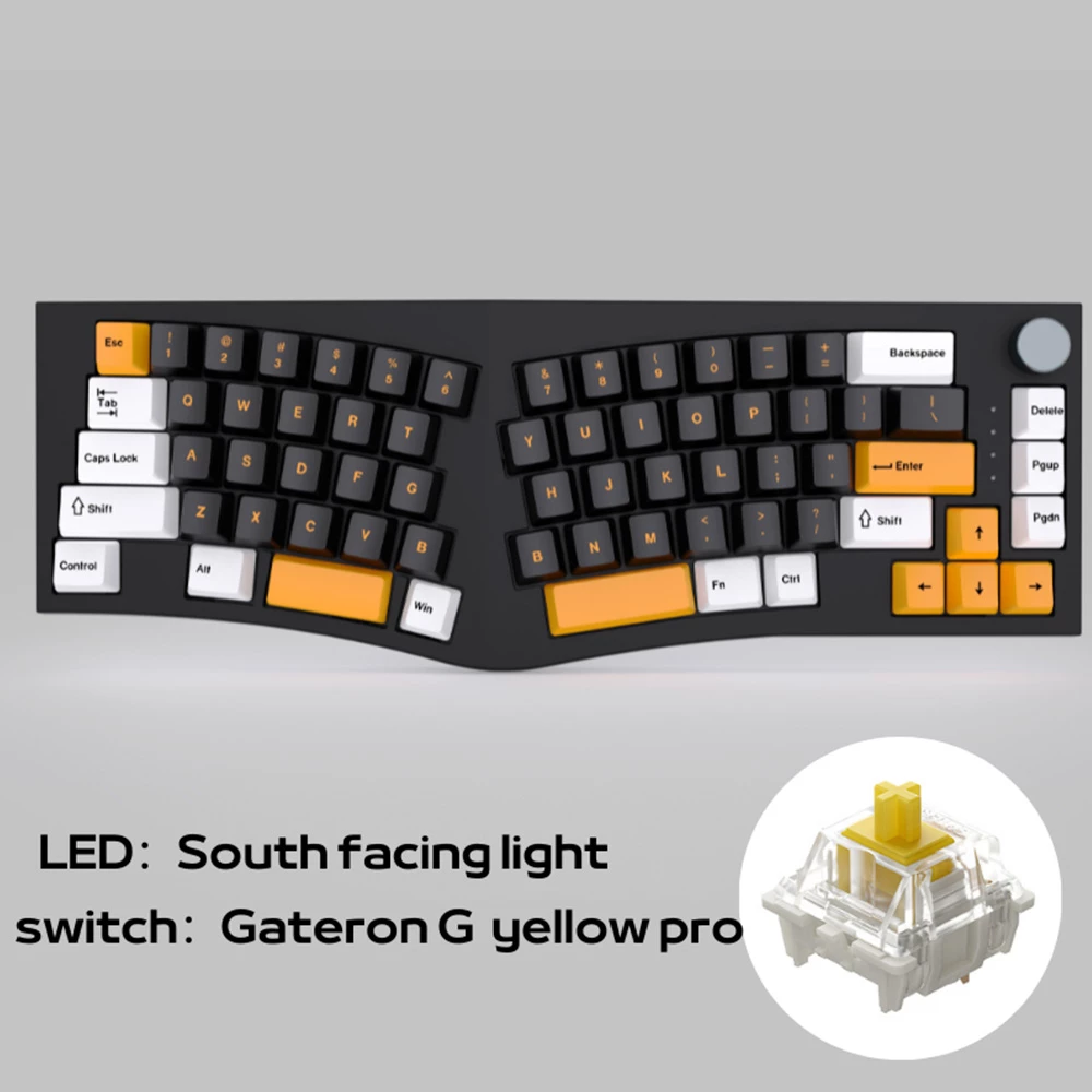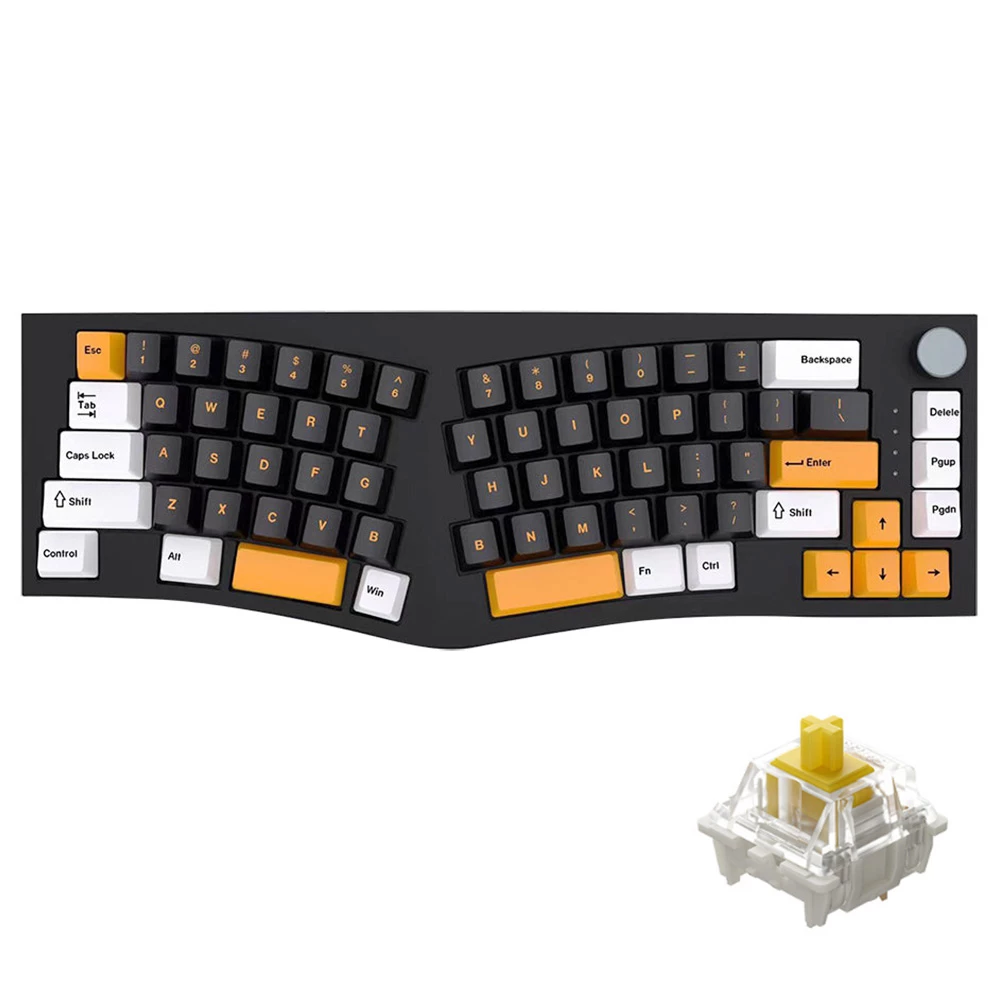 This 68-key mechanical gaming keyboard features hot-swappable switch sockets, a split layout, gasket mount, and sound absorption foams. Hot-swappable sockets for easy customization including Cheery MX, Kailh, Gateron switches, and other 3-pin/5-pin switches. Pre-lubed switches make it easier for customization, providing smoother keystrokes.