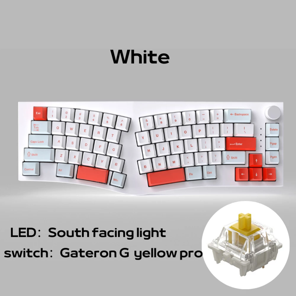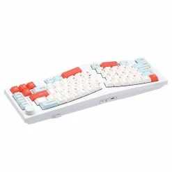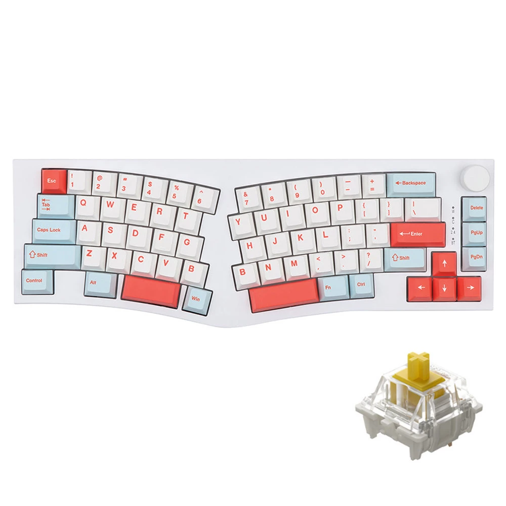 This 68-key mechanical gaming keyboard features hot-swappable switch sockets, a split layout, gasket mount, and sound absorption foams. Hot-swappable sockets for easy customization including Cheery MX, Kailh, Gateron switches, and other 3-pin/5-pin switches. Pre-lubed switches make it easier for customization, providing smoother keystrokes.