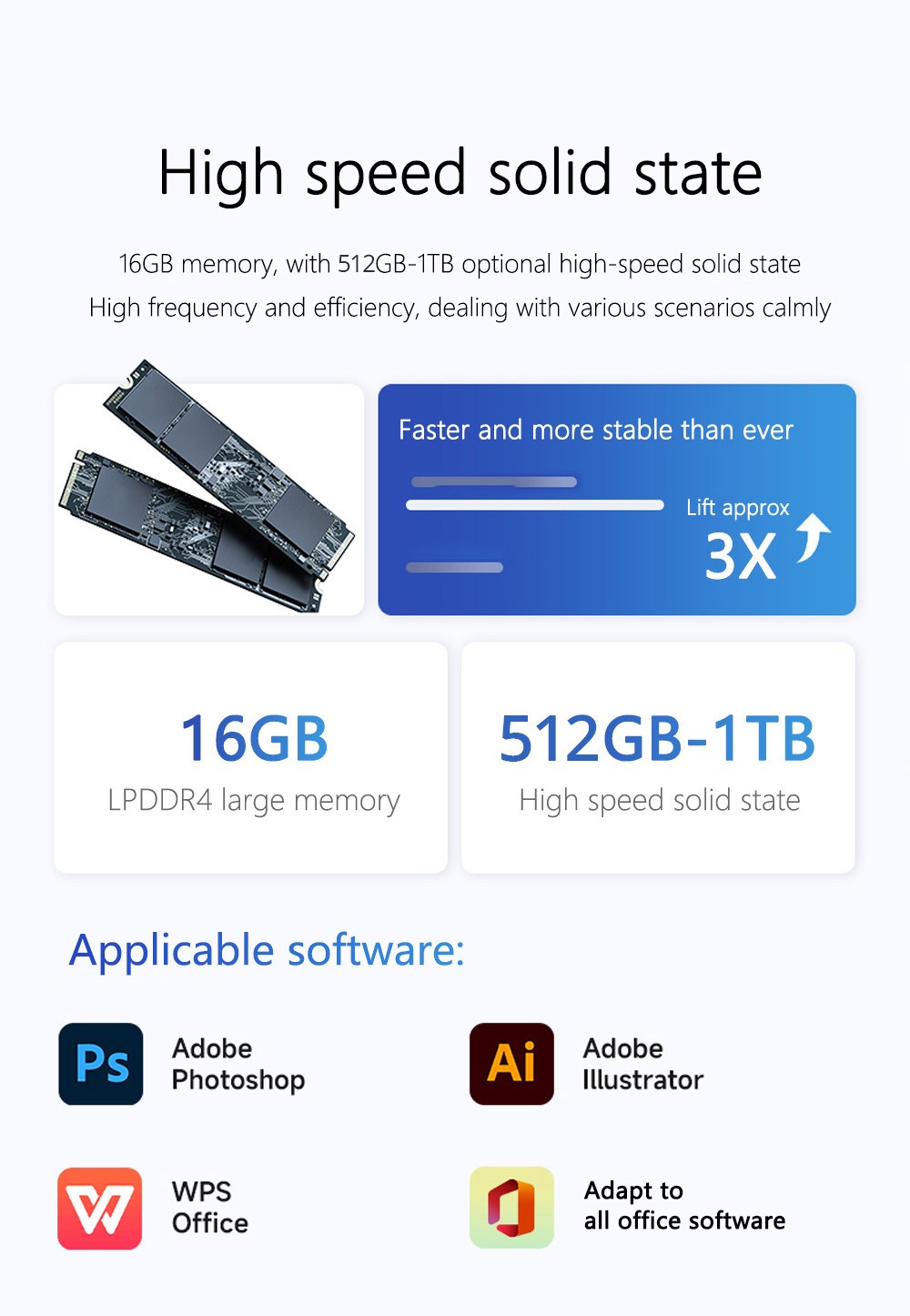 16GB DDR4 memory, hard disk 512GB SSD, can meet your need to store files, 4 cores 4 threads.