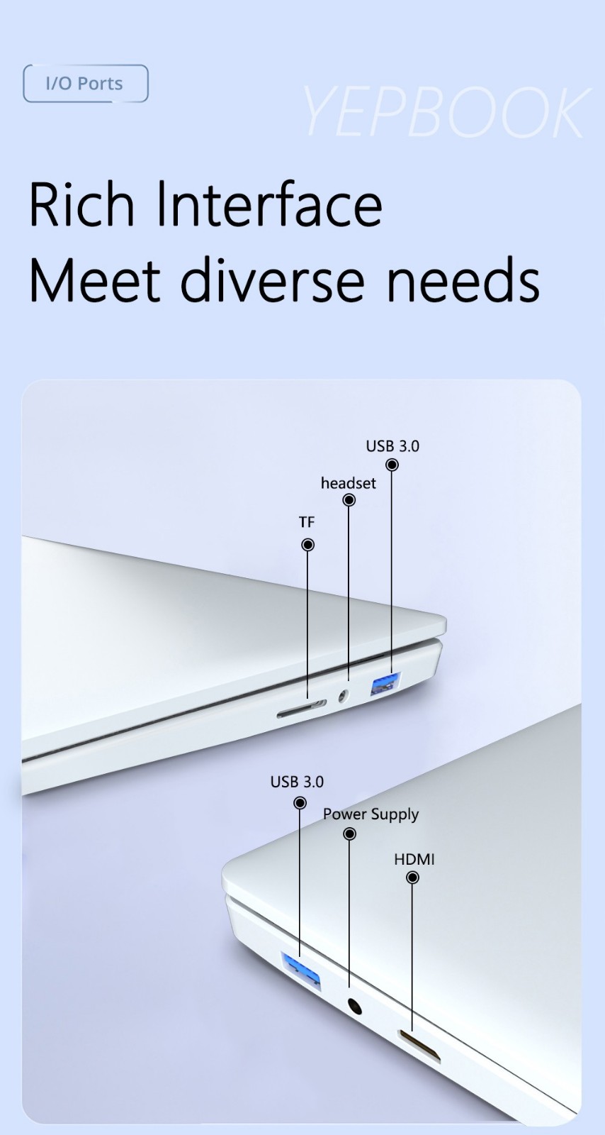 Data interface: a USB 3.0, audio interface. 3.5 headphone jack MIC, other interfaces. HDMI SSD.
