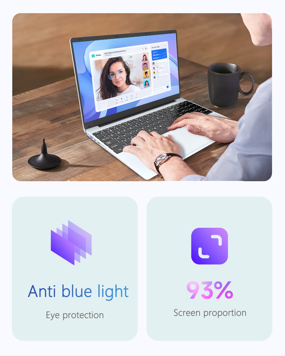 15.6″ 1920 x 1080 FHD IPS screen Full metal body with simple and stylish appearance Self-contained keyboard input full-size keyboard, backlight, fingerprint recognition.
