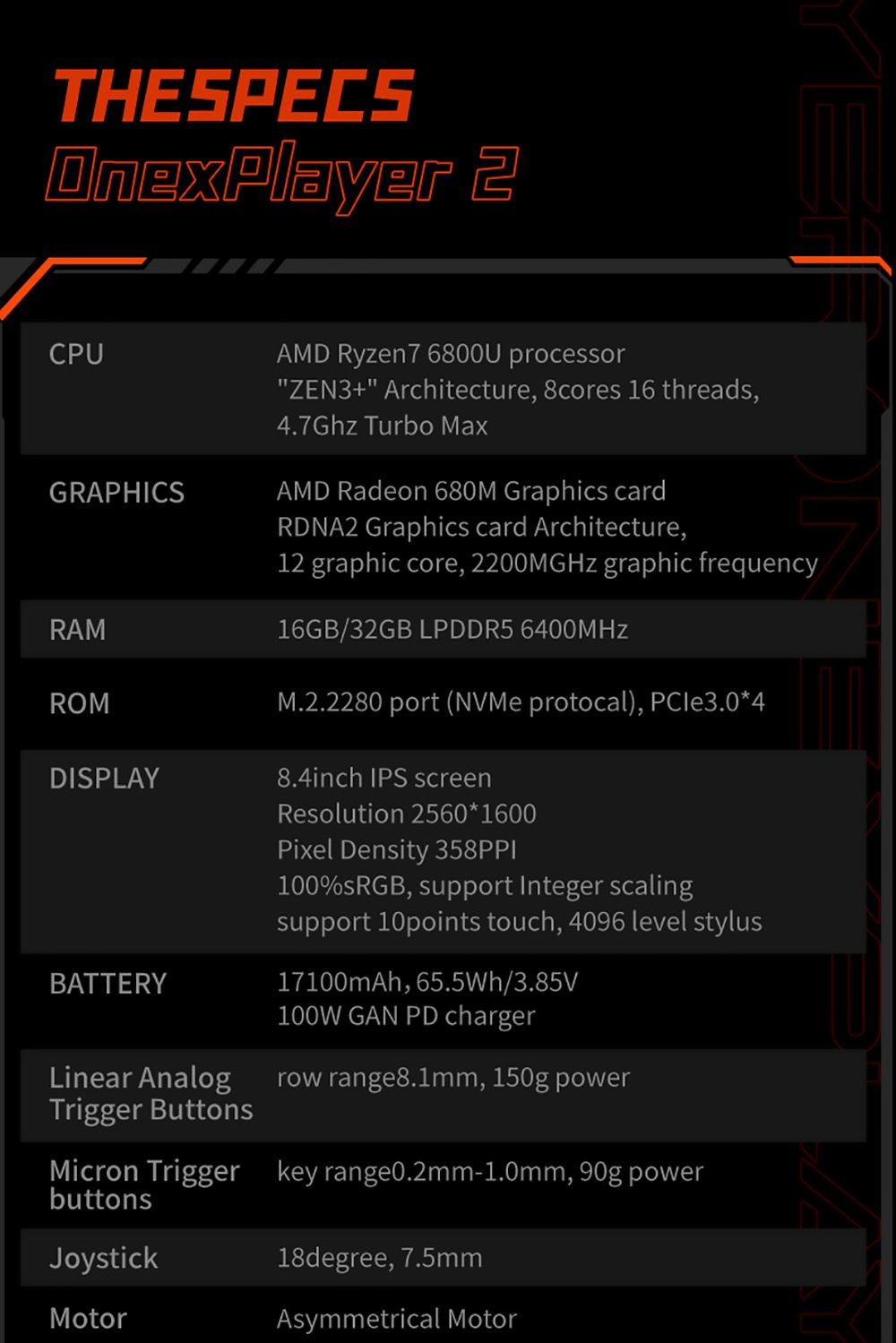 ONE Netbook OneXPlayer 2 Game Console 8.4” 2K IPS Screen AMD Ryzen 7 6800U 16GB LPDDR5 2TB M.2 17100mAh Battery Windows Black – US