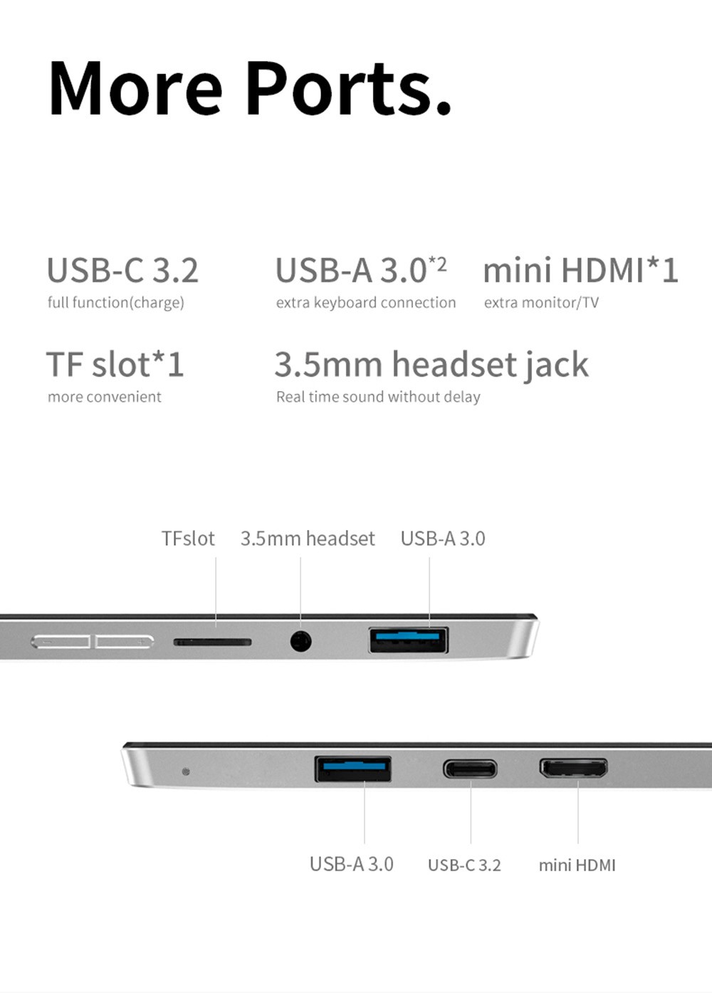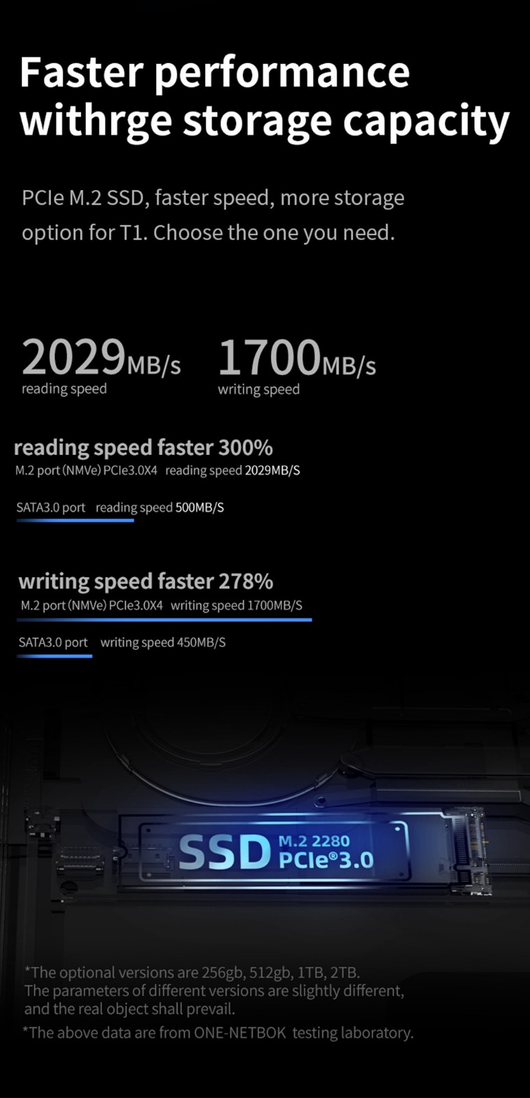 One- Netbook T1 features a built-in M.22280 PCIe3.0 solid-state drive, supporting up to 2TB of PCIe. This empowers higher reading and writing speeds, negates anxious wall time, and allows for more local files. One-Netbook T1 also supports TF card as a more cost-effective way to add hard drive capacity.