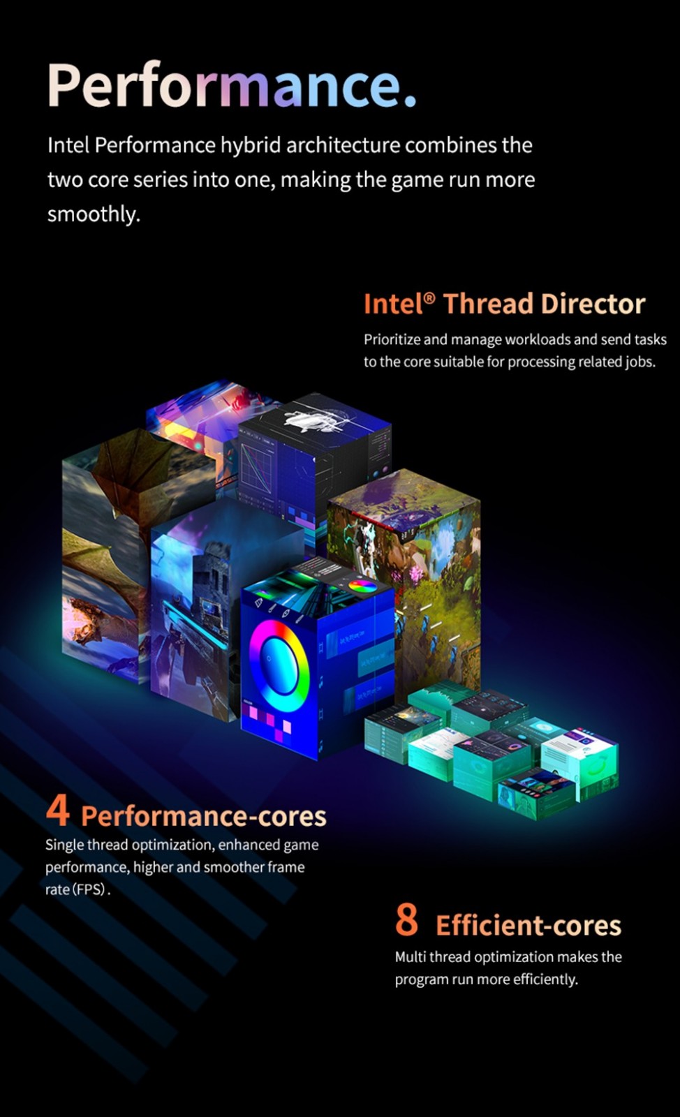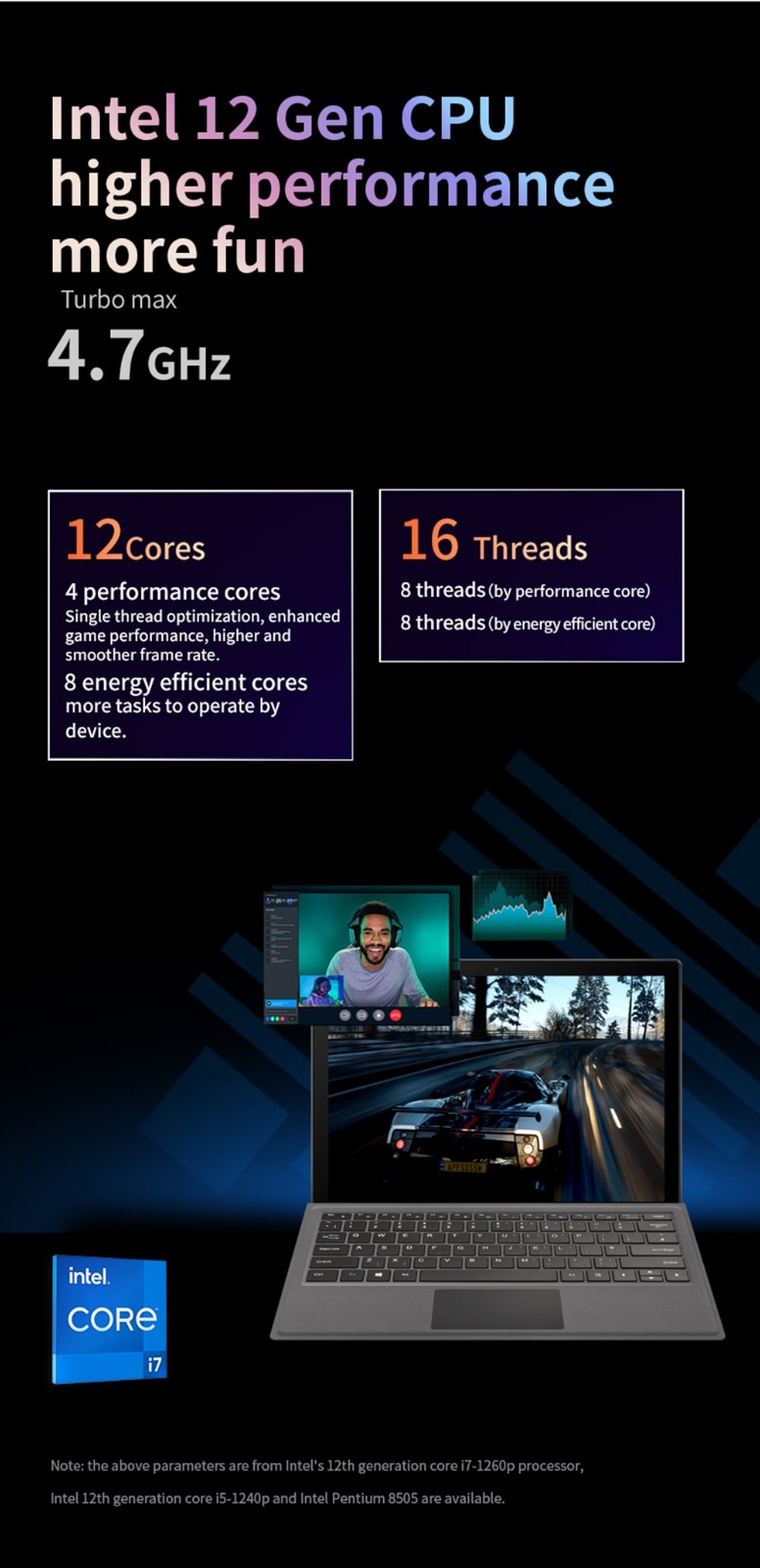 A large PC-grade fan, dual pure copper liquid heat pipes, pure copper cooling fins, and an intelligent control system for lower surface temperature and longer battery life.