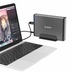 The creative vertical design makes the hard drive enclosure make the desk more clean and tidy.