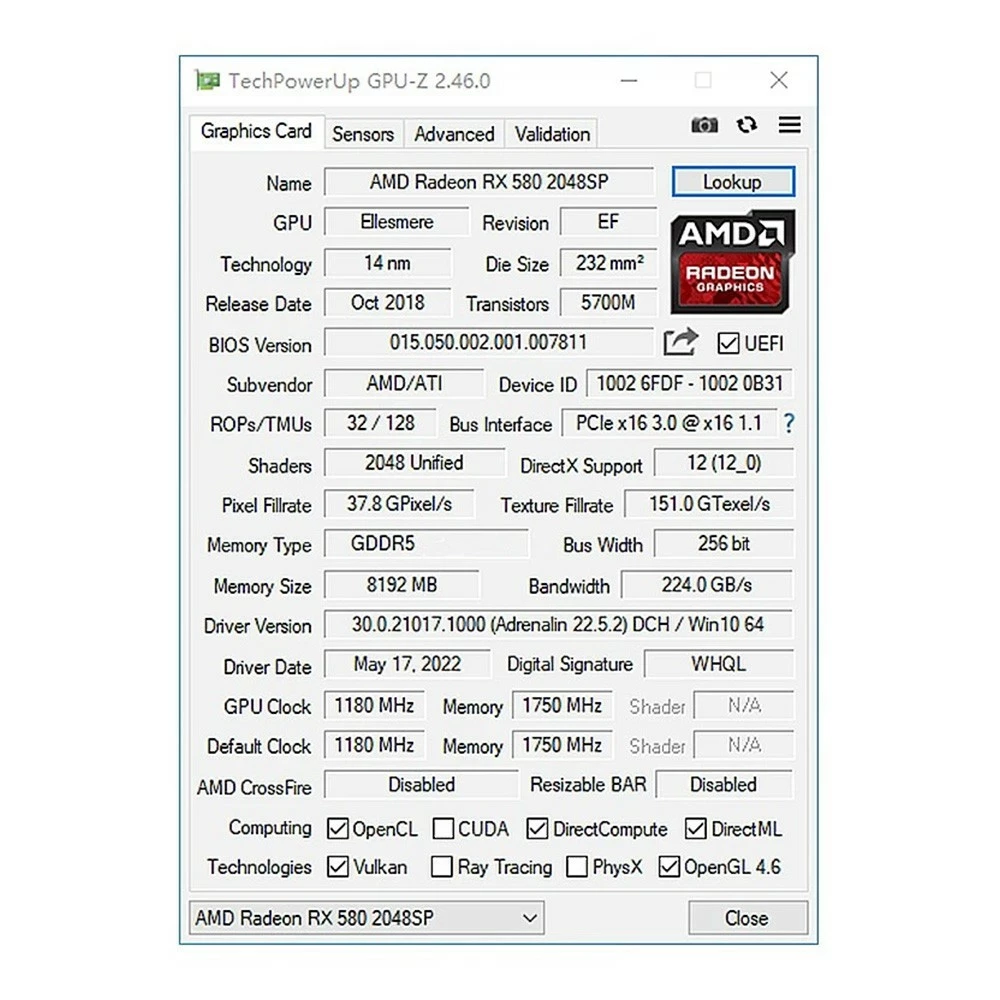 RX580 8G 2048SP gaming graphics card