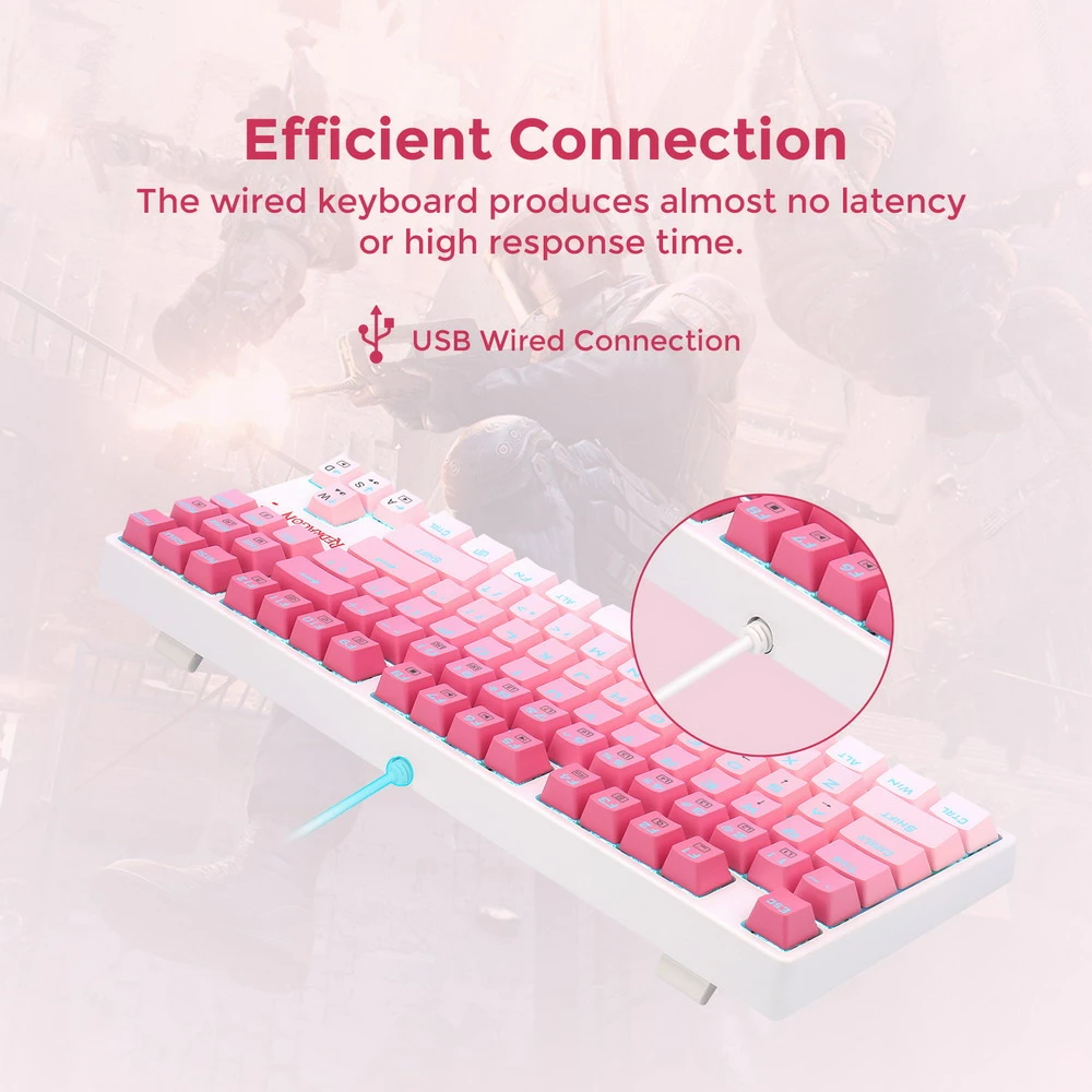 The innovative 87-key layout cuts more clumsy space off while still supporting the functionality of practical arrow, multimedia and control keys. The compact design saves more space for mouse movements, ideal for gamers and office workers.