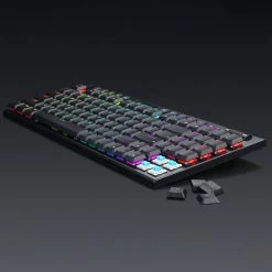 The removable blue switches respond fast and allow you to type easily and change switches without replacing the whole keyboard. 5 extra outemu switches are attached for replacement.