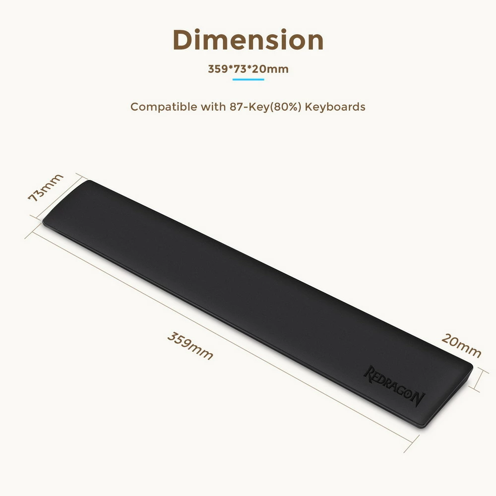The size of the wrist rest is 35.9×7.3x2cm (14.13×2.87×0.78in). It is compatible with 87-key(80%) keyboards.