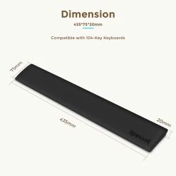 The size of the wrist rest is 43.5×7.3x2cm (17.12×2.87×0.78in). It is compatible with 104-key keyboards.