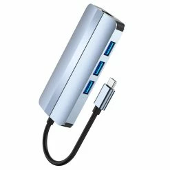This 6-in-1 USB-C hub features a 100WPD fast charging port, HDMI-compatible Port, 3Â USB 3.0 ports, and RJ 45. The adapter suits MacBook Air Pro, USB C laptops, mobile phones, pad and other type-C devices.