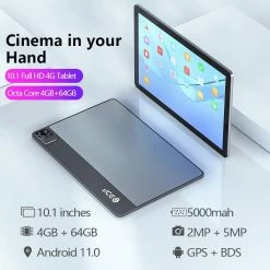 BDF M107 10.1 Inch 4G LTE Tablet For Kids Octa Core 2GB+32GB Android 10 8MP+2MP Dual Camera – Silver
